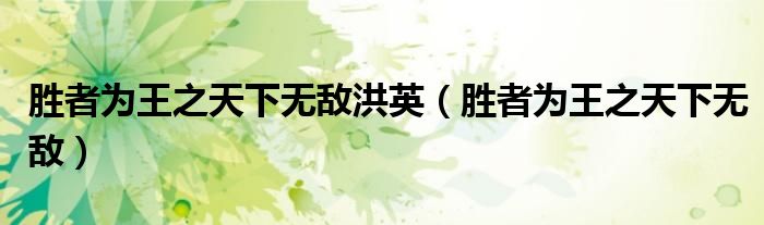 您好,今天小编胡舒来为大家解答以上的问题。胜者为王之天下无敌洪英,胜者为王之天下无敌相信很多小伙伴还不知道,现在让我们一起来看看吧!